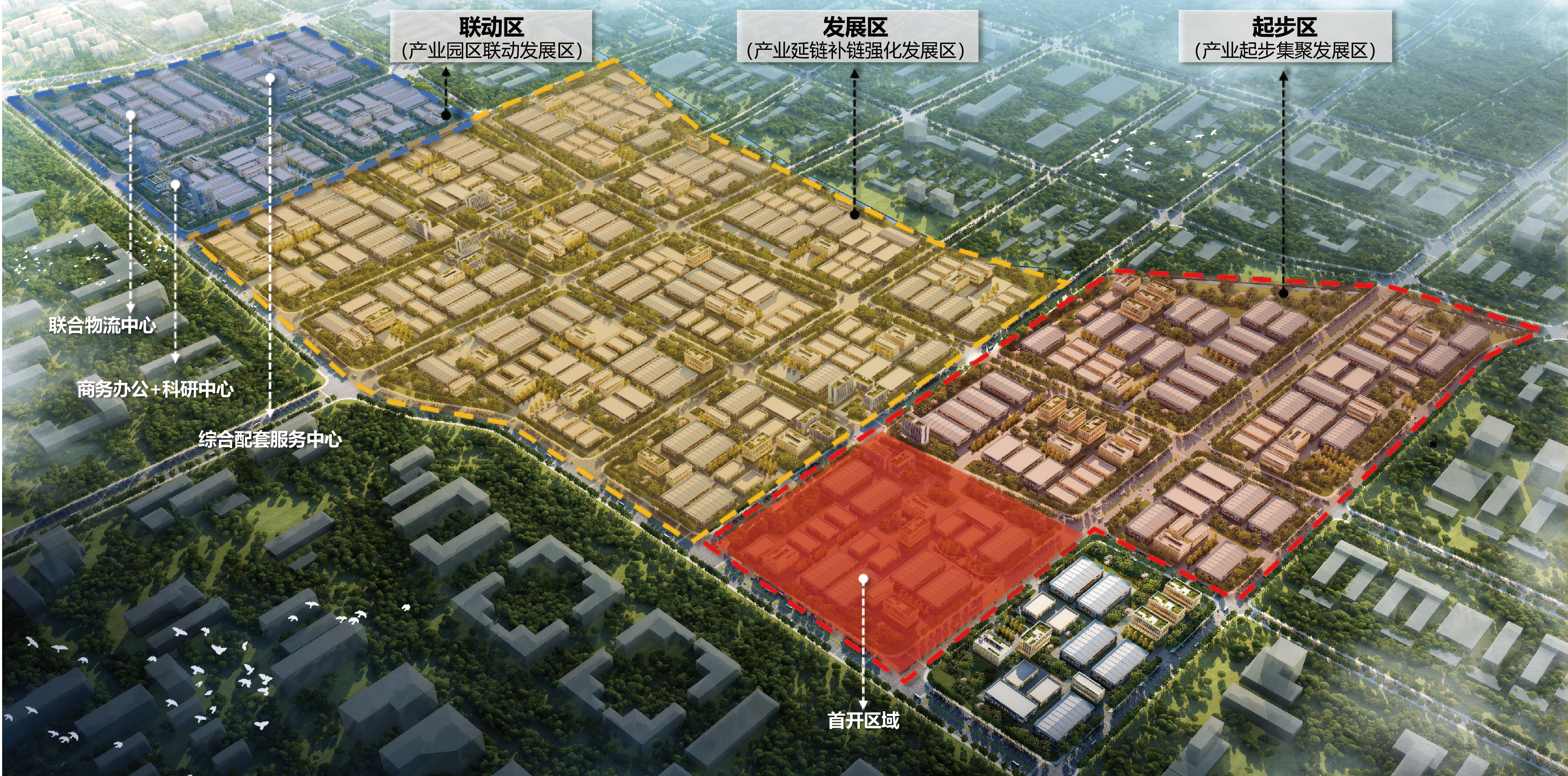 新联合· 封丘现代制造业产业园位于封丘县先进制造业开发区,总占地面积约7000亩,其中起步区工业用地总面积约1200亩,总投资约40亿元。首开271.5亩位于西环路、宋源大街(封曹路),项目将依托封丘县主导产业定位及发展方向,围绕装备制造、医疗器械、食品制造、新材料等产业方向进行产业链招商,形成产城融合发展的现代制造产业园示范园区。